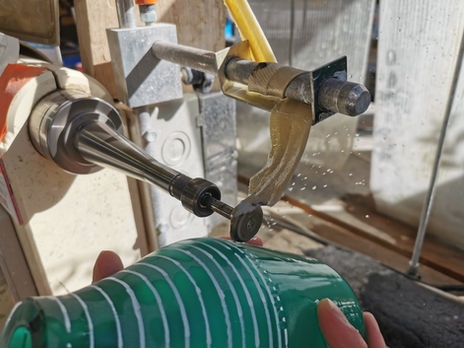 Voici un vase qui se place -non sans ambivalence- dans un monde fait de bijoux, d'artisanats et de designs. Il a été imaginé et prototypé en plein confinement, une période qualifiée d'« entre-deux ». Ce nom évoque également le dialogue qui existe entre le designer et le savoir-faire de l'artisan. Un vase entre-deux mondes, disions nous ? Ce petit objet est pensé et travaillé comme pourrait l'être un bijou. Aussi précieux par sa forme que par son procédé de fabrication, chaque gravure est apposée délicatement, à la main. A la fois brute, râpeuse et naturelle, cette pièce unique offre à tout un chacun la possibilité de s'offrir une pièce d'exception, où chaque détail compte. Ce vase a été dessiné par Pirouette, en collaboration avec l'artisan verrier Timothée Véron. La forme générale est soufflée à chaud dans un moule en bois. Le vase est ensuite gravé à froid. Il existe 6 couleurs et il est fabriqué à la main. Ø 97 x 197 mm entre 500 et 550g trou intérieur : Ø20 mm