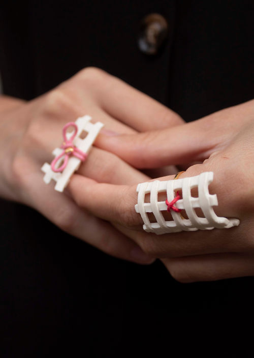 "Papouilles" est une collection de bijoux questionnant notre rapport charnel à cet objet fragile et précieux. Pour mettre en avant ces créations uniques, une vitrine « céramique sensible » a été aménagée dans la boutique de la marque Gomez (au 21 rue gabriel péri) du 14 au 28 septembre 2023, lors de la France Design Week. Travaillés à la plaque, ornés d'empreintes et découpés à l'aide de gabarits; la mise en forme de ces accessoires se rapproche fortement de celle du carrelage conçu par la marque Gomez. Parfois mettant en avant une courbe, un grain de peaux, une forme ou un défaut ; ces bijoux cherchent à ouvrir le débat sur la place de la porcelaine papier, dans le monde du design. Cette collection unique de bagues, anneaux, pendentifs et bracelets est vendue sur commande.